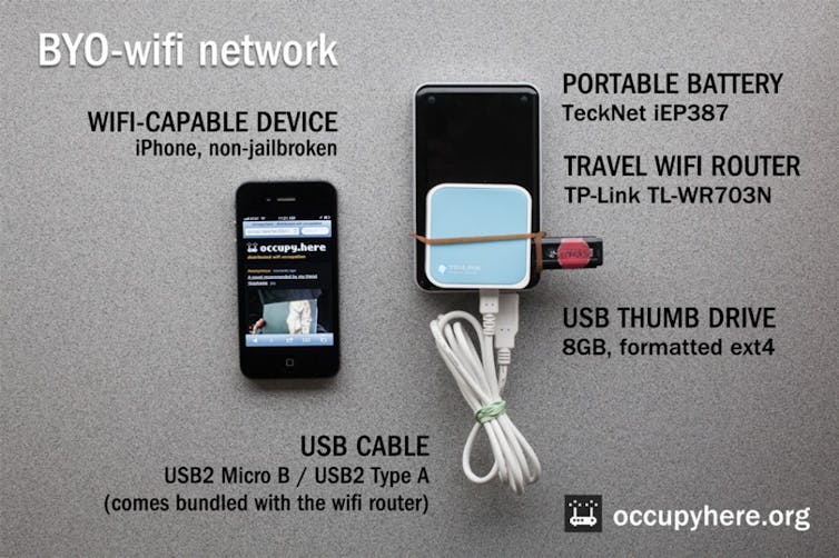 The ‘occupy here’ DIY network node, developed by Dan Phiffer during the Occupy Wall Street movement in New York.